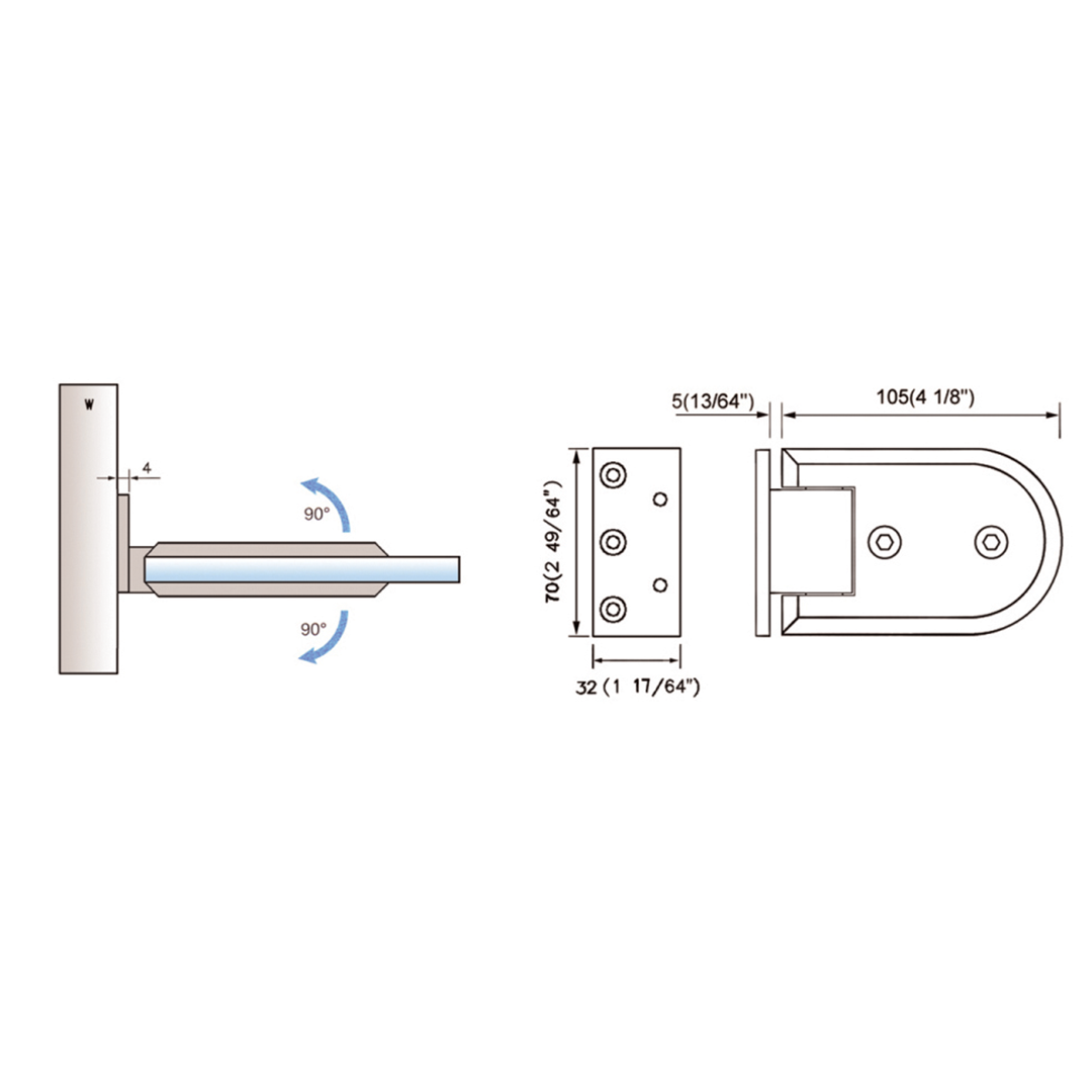 Standard Duty Shower Hinges Wall Mount 90 degree Glass Clamp OffSet Back Plate Glass Door Hinge L-2132Specifications:...